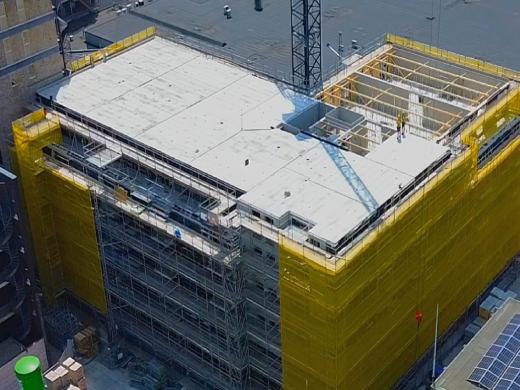 De platen van het dak zijn vorige week succesvol geplaatst. Vanaf vroeg in de morgen werden er enorme platen het dak van het gebouw op gehesen om het dak te plaatsen.