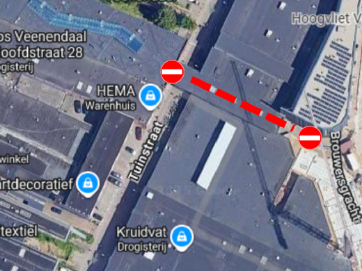 Afsluiting voetgangerspad Tuinstraat - Brouwersgracht